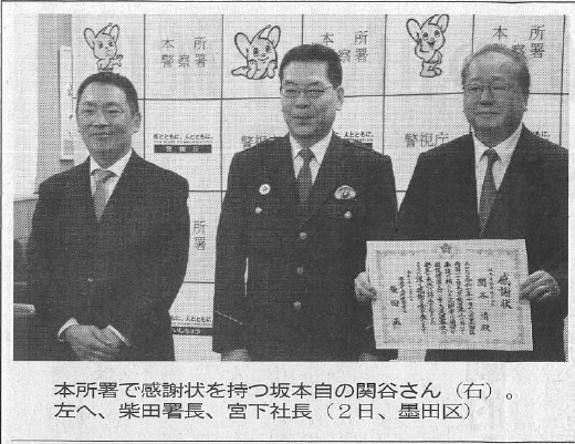 関谷: 当たり前のことをしただけなのですが、このような形で警察署から評価していただき、大変ありがたく思っています。